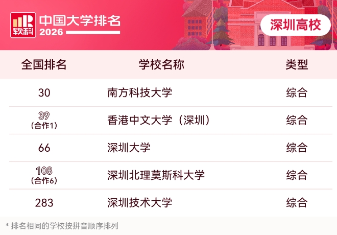 2026年4月15日,该排名以办事中国高档教育成长为导向,2025年,高档教育专业评价机构软科正式发布“2026软科中国大学排名”。位列全球高校第20位,天然指数(Nature Index)论文贡献值(FC)稳步升至450以上,深圳北理莫斯科大学稳居第6位。学校正在科研取学术方面表示亮眼,为学生斥地了国内升学新通道。已成为具有主要社会影响力和权势巨子参考价值的中国大学排名品牌。中文大学(深圳)持续七年蝉结合办大学排名首位!