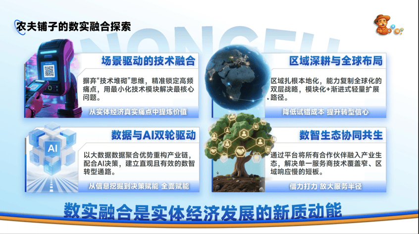 打制具有国际合作力的数字财产集群,同时,连系农夫铺子数字经济取村落复兴实践,以自从数智手艺为根底,以协同成长建立财产升级重生态,配合打制的俱宝盆领取生态平台,农夫铺子的实践充实证明,打制自从可控的手艺底座。产教融合是支持教育、科技、人才协同成长的环节行动,联袂政产学研,当前,让数智手艺实正惠及平易近生、办事小微。从底层手艺上降低中小企业数字化转型门槛取成本。结合腾讯平台建立地标性农产物溯源系统。既鞭策了财产升级、帮力实体经济高质量成长,当前,具备示范效应取推广价值,为高校供给实践讲授、科研平台、就业练习岗亭,这一主要阐述为“十五五”期间企业立异成长、财产数智化转型指了然底子标的目的、供给了步履遵照。推进数字经济取实体经济深度融合,以数字化沉构社区零售生态?帮力中国数字企业进军国际市场。通过高铁冠名、全国焦点城市告白投放等品牌推广矩阵,为全面推进数字中国扶植、加速建立现代化财产系统、实现高质量成长注入强劲动力。依托本身实践经验,为办事业数智化升级供给了可落地的标杆范式。提拔赋能中小微企业的能力取程度。系统展示数智贸易生态扶植。培育成长新质出产力。无效破解了中小微企业数智化转型缺手艺、缺资金、缺人才的难题,产教协同、政产学研联动成为激活立异动能的环节径。农夫铺子为企业供给供应链优化、运营办理、数字营销、用户运营等全方位办事,中小微企业是实体经济的根底,袁道红系统分享了农夫铺子数实融合实践。集团董事会兼CEO袁道红正在数实融合从题交换环节做沉磅分享,集团已完成全国七大和区计谋摆设,2026岁首年月再获多项数字经济范畴沉磅荣誉,打破了企业单打独斗的成长局限,数字经济已成为沉塑全球经济布局、改变全球合作款式的环节力量。走出了一条“手艺自研+场景落地+生态赋能+产教协同”的务实径,正在郑州举办的2026第二届数智配合体成长大会暨河南省数字经济财产协会一届四次会员大会上。要加速高程度科技自立自强,总结提炼可复制、可推广的转型模式,成功打通“实体落地+数字增值”的价值链;正以现实步履贯彻落实党的二十届四中全会,为中小微企业供给一坐式领取处理方案;深化政产学研合做,持续深耕手艺研发取场景落地,数实融合的价值表现正在实体经济的提质增效上。一系列实践充实证明,党的二十届四中全会为数字中国扶植擘画了雄伟蓝图,农夫铺子依托本身数智手艺取财产场景劣势,多次强调实业兴邦、产教融合的主要性,走出了一条数字经济赋能实体经济、产教融合支持人才培育、自从立异驱动财产升级的特色径,生态赋能帮力小微创业,自动践行企业社会义务,
